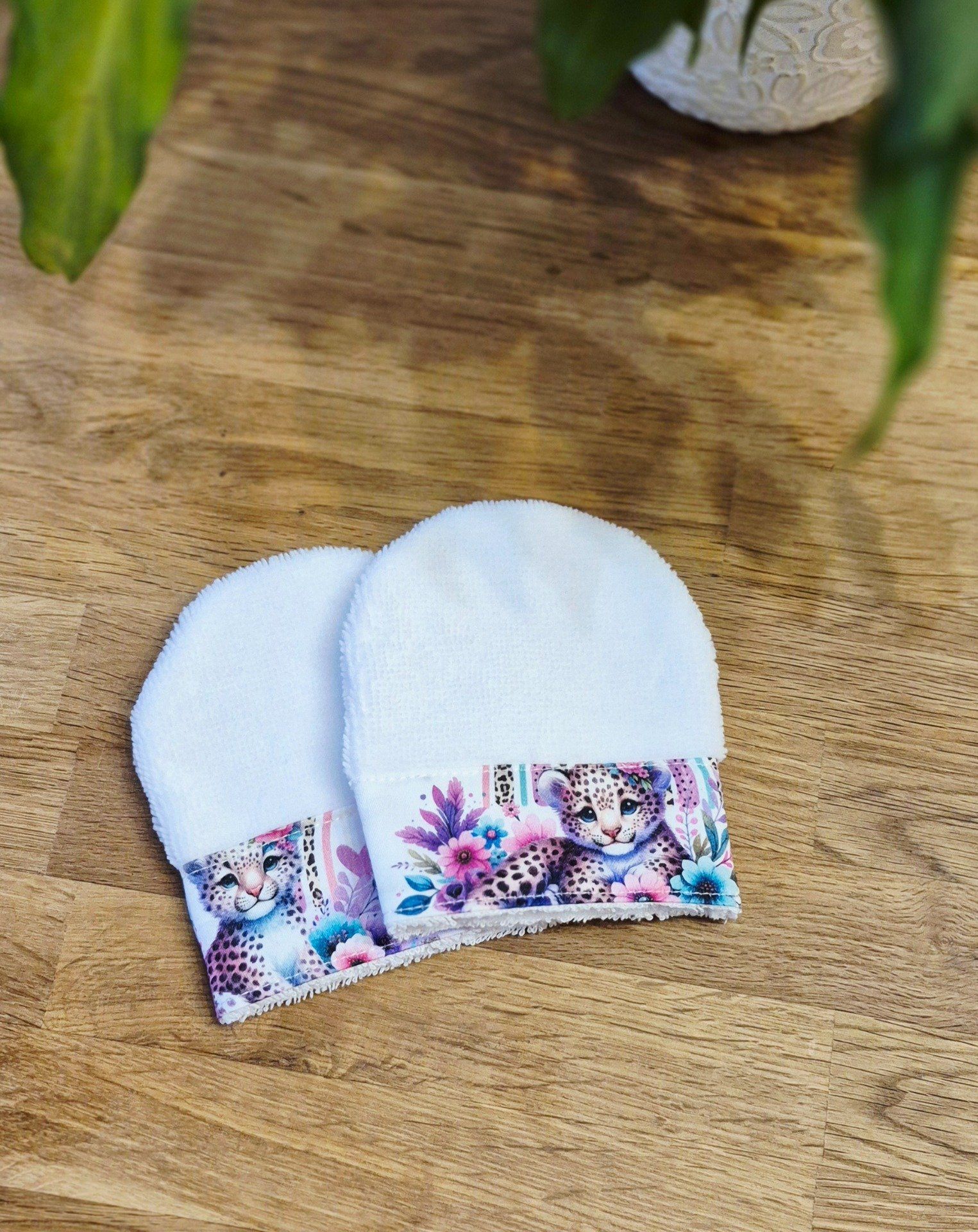 Petits gants de toilette pour apprendre l'autonomie à la toilette aux enfants.