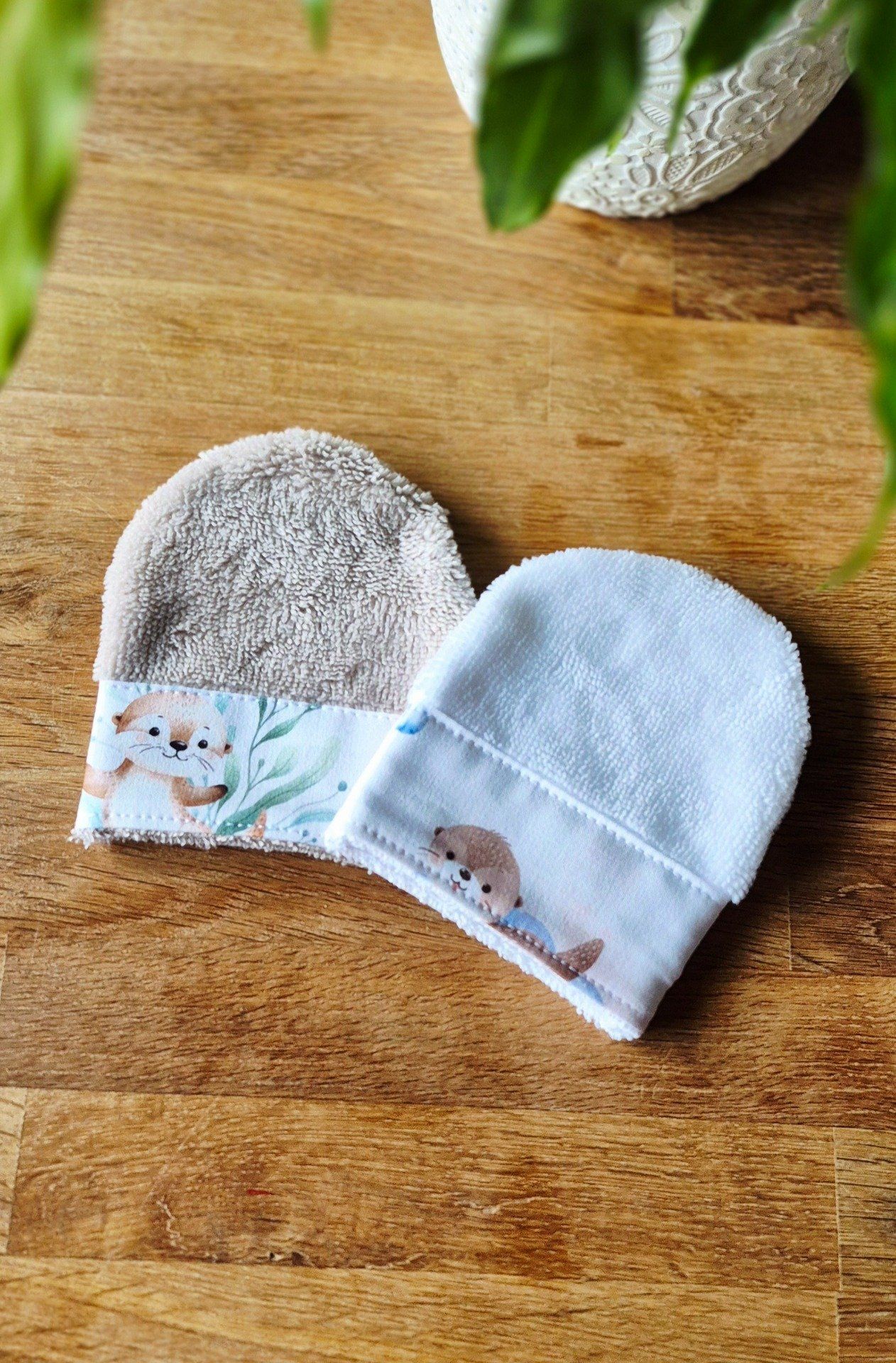 Petits gants de toilette pour apprendre l'autonomie à la toilette aux enfants.