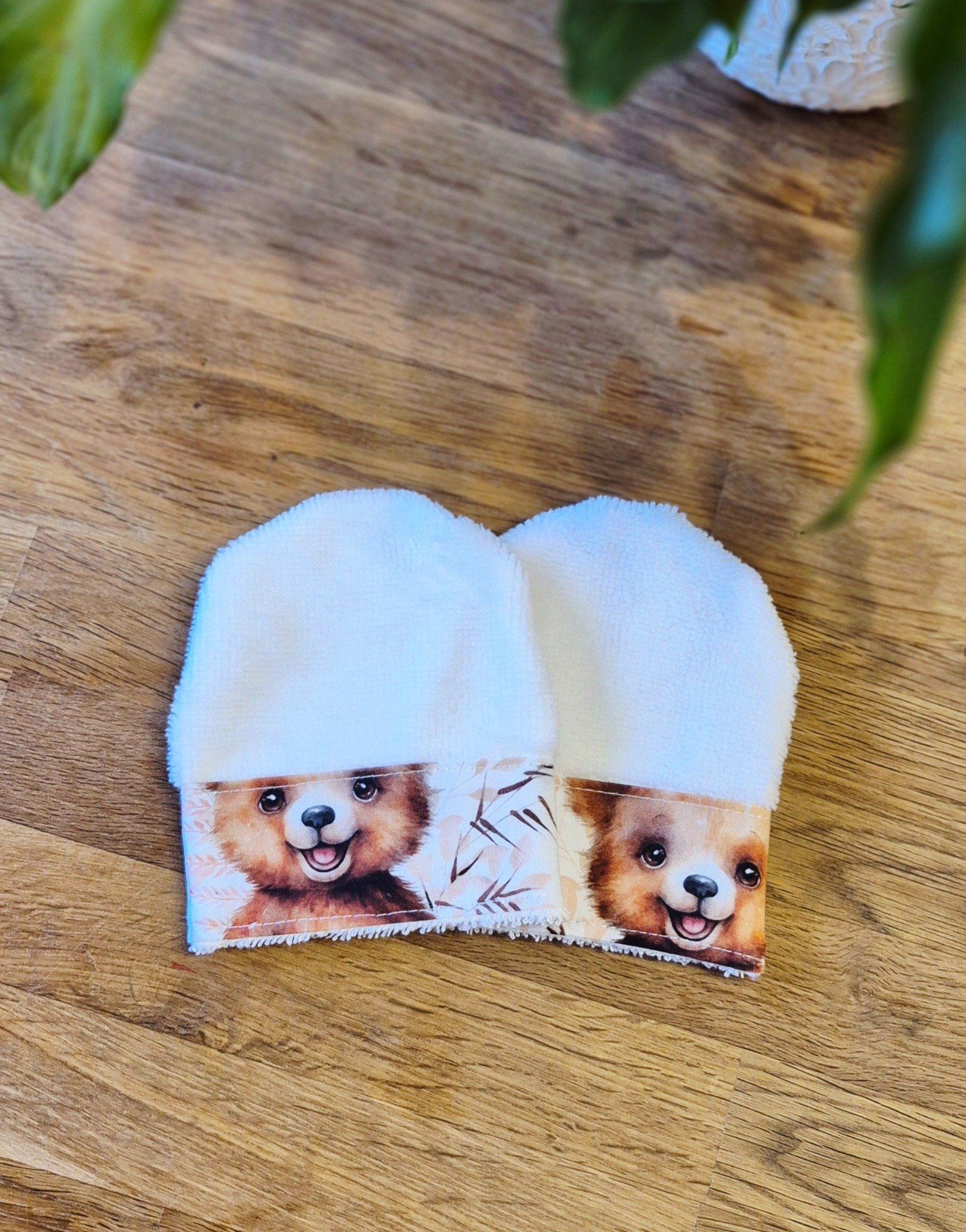 Petits gants de toilette pour apprendre l'autonomie à la toilette aux enfants.
