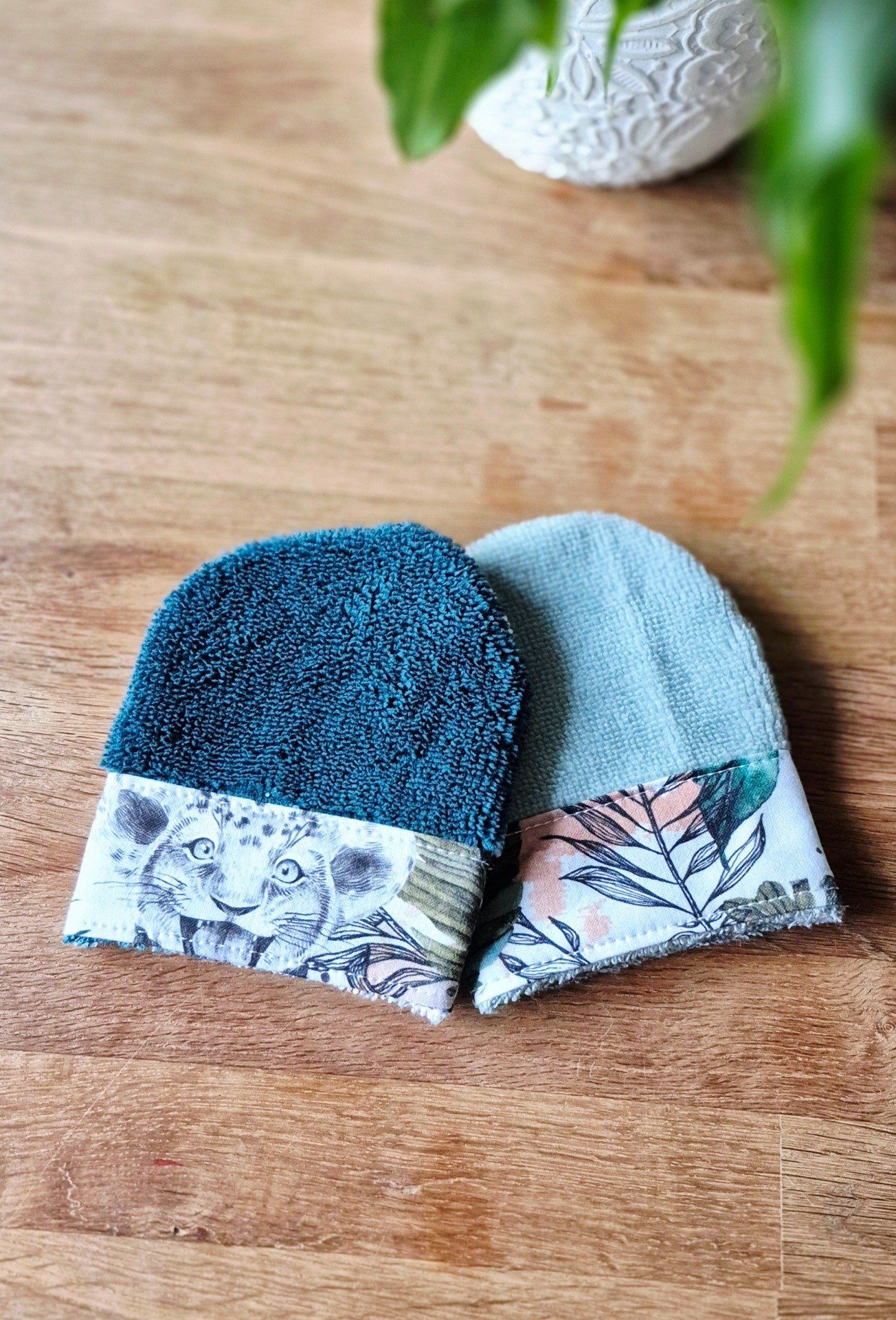 Petits gants de toilette pour apprendre l'autonomie à la toilette aux enfants.