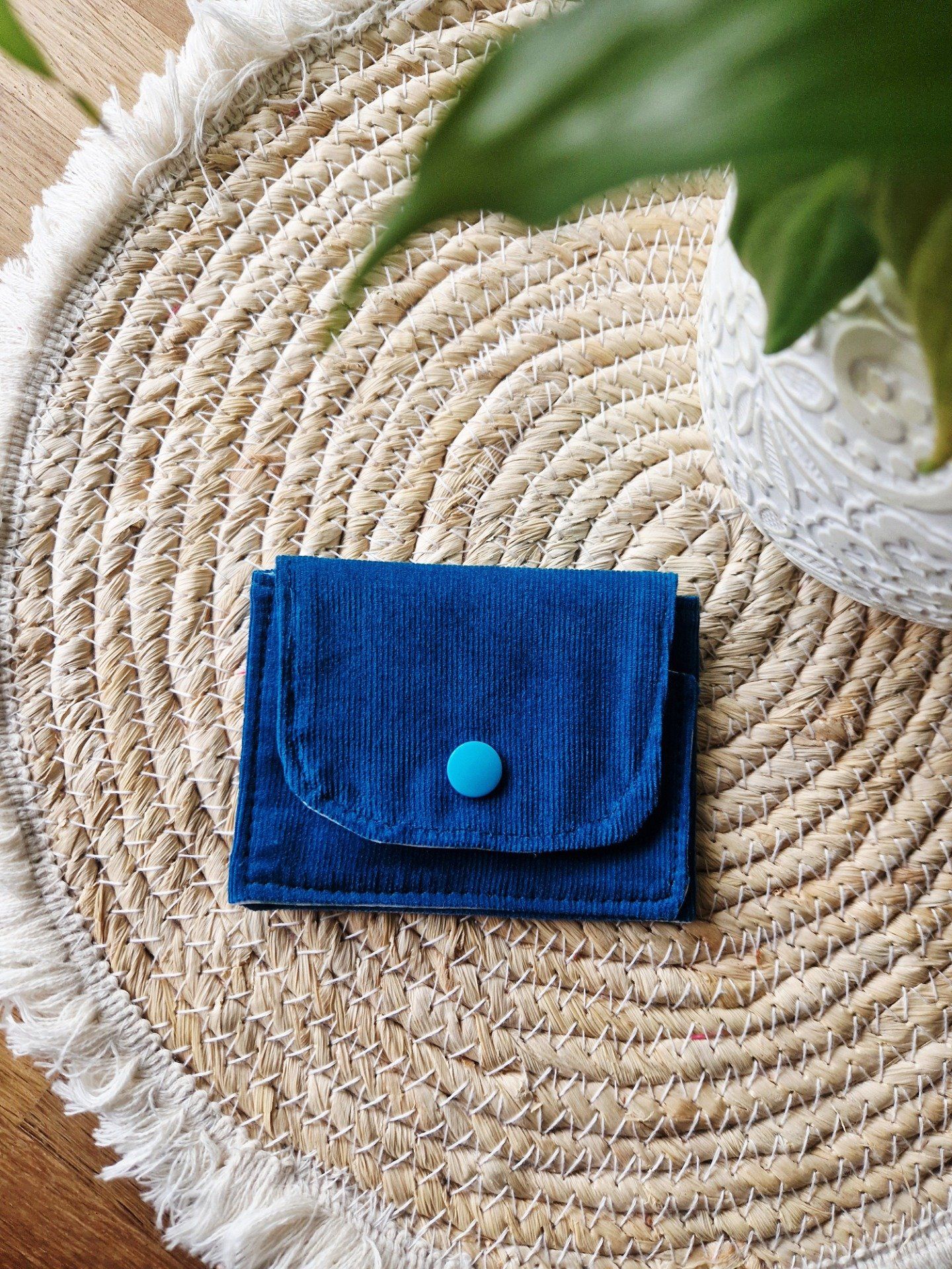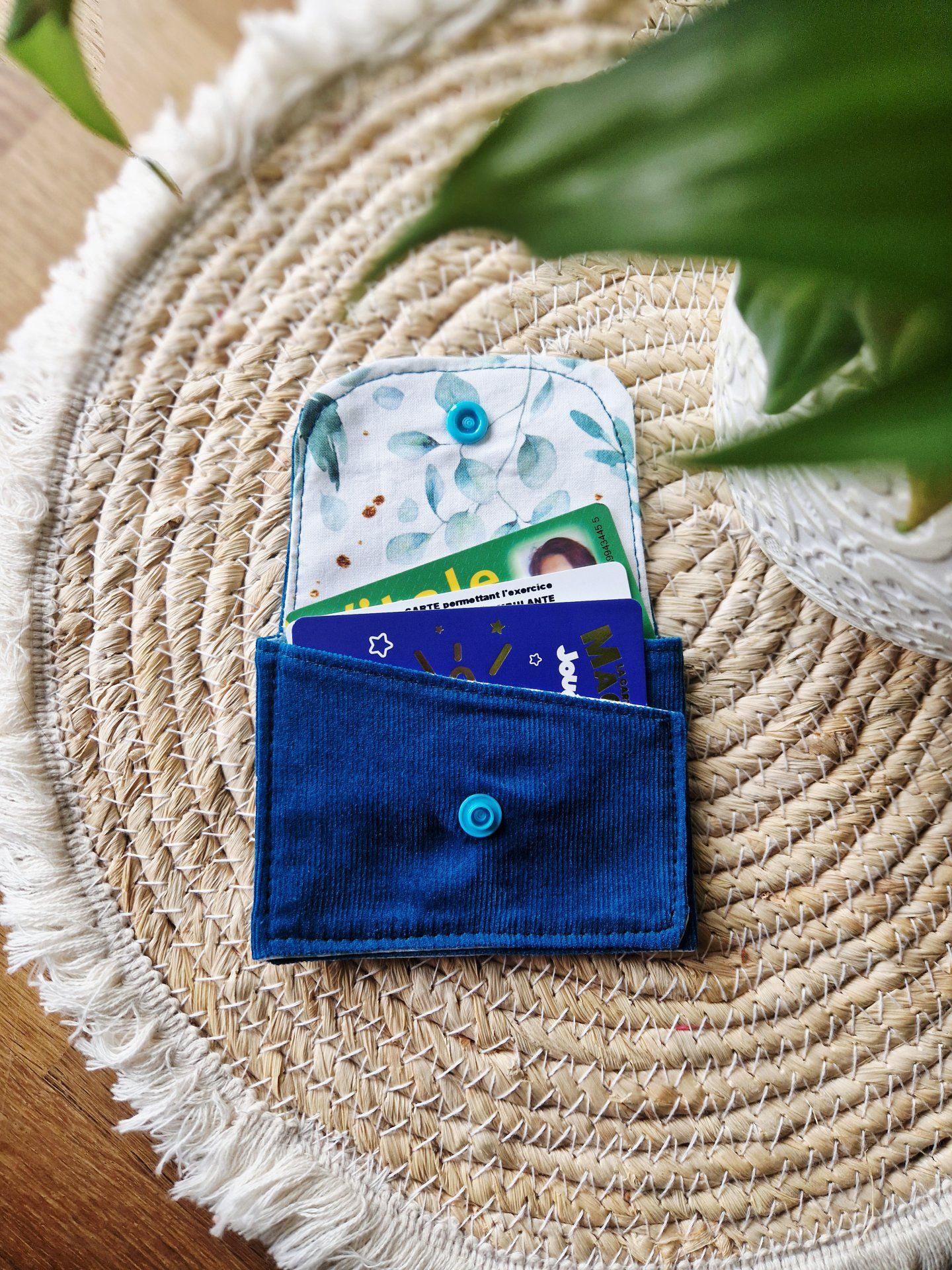 Porte-cartes en velours orné d’un motif floral, doté de deux compartiments pratiques.